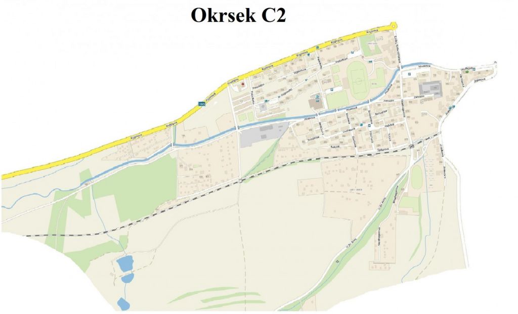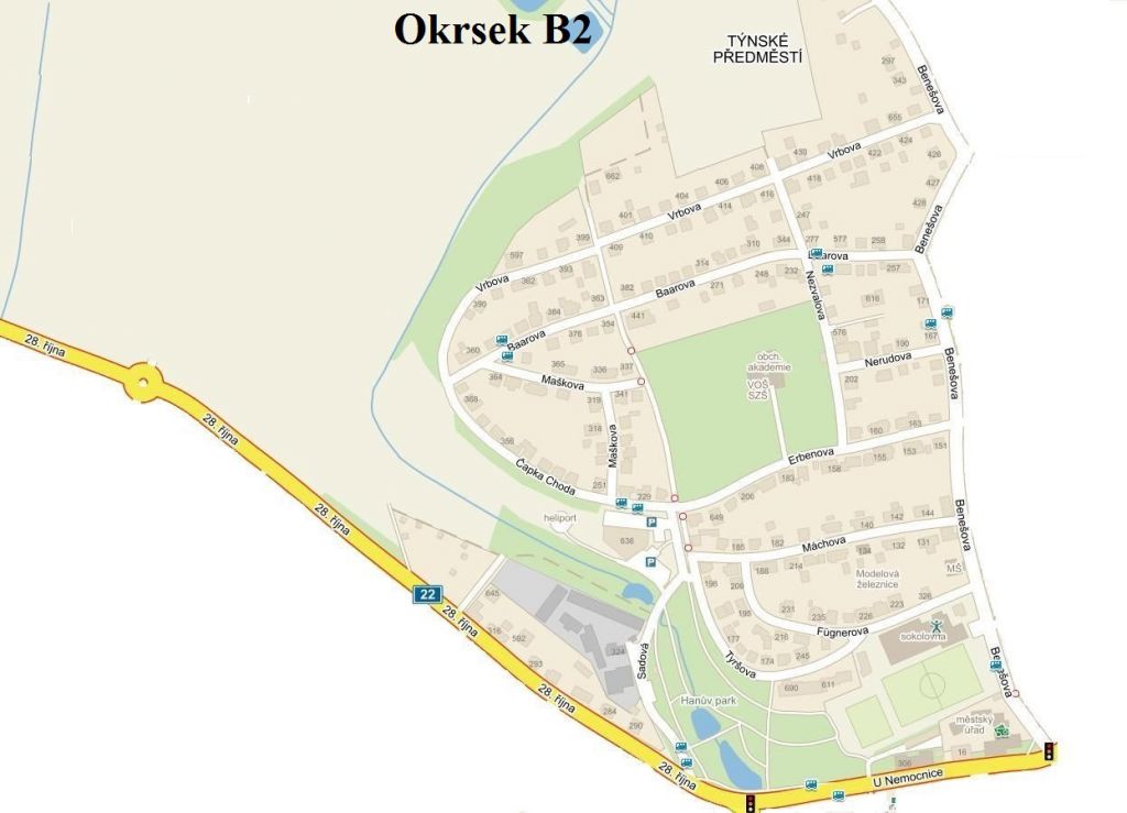 Seznam ulic: Čapka Choda, Vrbova, Baarova, Maškova, Nezvalova, Nerudova, Erbenova, Máchova, Sadová, Fügnerova, Tyršova, U Nemocnice.