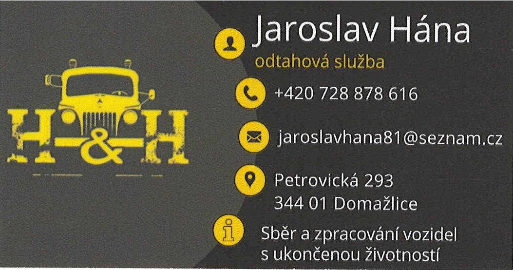 Pokud máte doma vozidlo, které chcete ekologicky zlikvidovat, aby bylo mozné ho vyřadit z evidence vozidel, můžete v Domažlicích kontaktovat firmu H & H na telefonním čísle +420 728 878 616. Váš nepojízdný vůz zdarma odvezou a vydají potvrzení o ekologické likvidaci potřebné pro trvalé vyřazení vozidla z ceterální evidence vozidel. Služba je pro občany ZDARMA. Firma má sídlo v ulici Petrovická čp. 293.