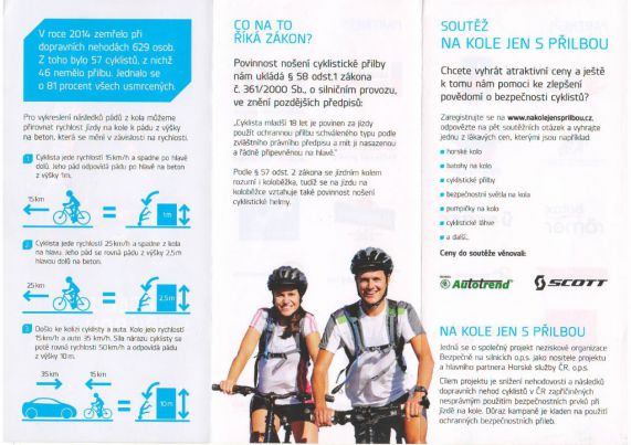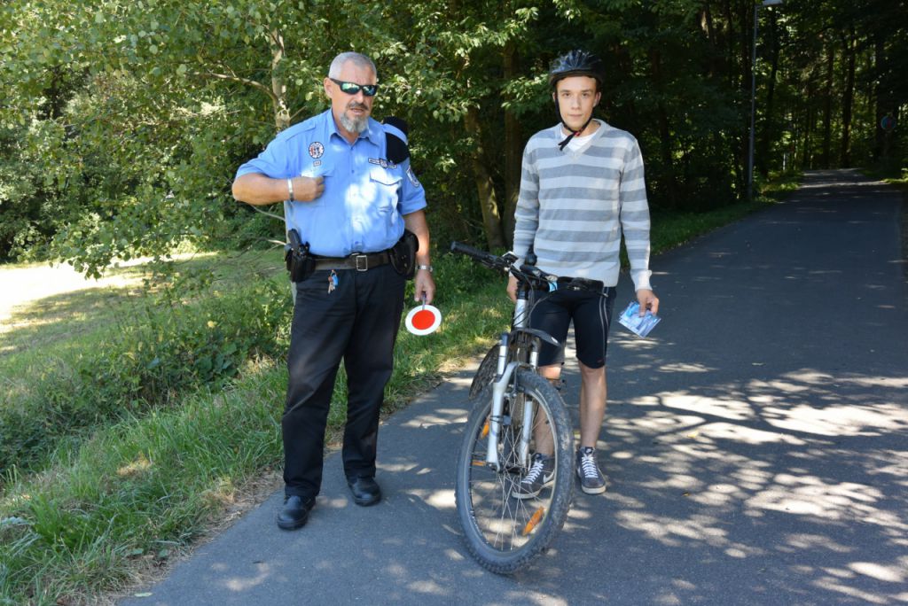 Na kole jen s přilbou je název preventivního projektu, do kterého se domažlická městská policie aktivně zapojila již druhým rokem. Smyslem projektu není postih cyklistů, domažličtí městští strážníci tentokrát místo pokut v rámci této akce rozdávají doporučení a rady, jak se bezpečně pohybovat v silničním provozu a tím snížit nehodovost a následky dopravních nehod cyklistů.