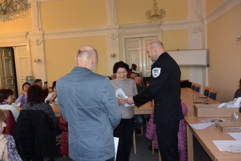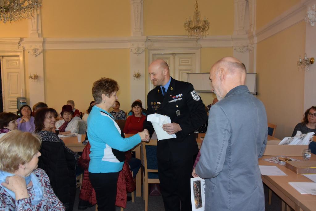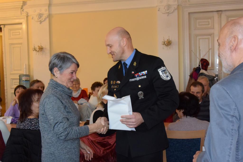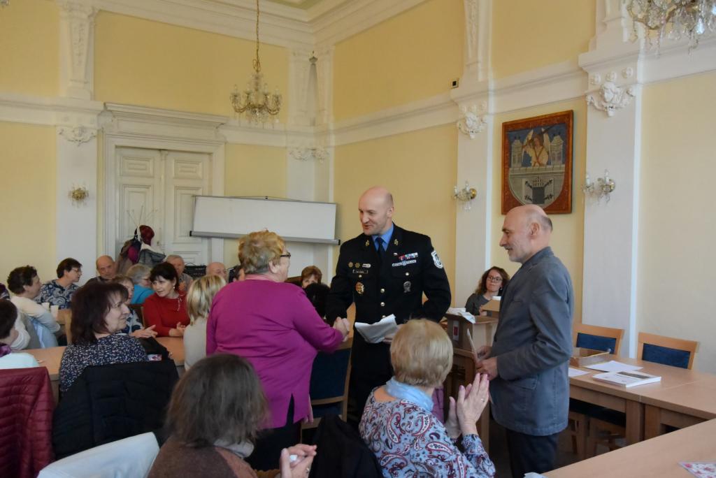 Senioři se dne 30.01.2020 naposledy sešli na 3. ročníku Domažlické senior akademie. Po dobu 11-ti týdnů se senioři společně scházeli a v přednáškových blocích se postupně seznamovali s různými tématy. Účastníci poznali činnost městské policie a Policie ČR, zopakovali si základy první pomoci, navštívili HZS Domažlice, probrali kriminalitu páchanou na seniorech, nechyběla ani sebeobrana pro seniory a trénink paměti. Slavnostní zakončení akce se konalo za přítomnosti starosty města Domažlice JUDr. Zdeňka Nováka a velitele městské policie Mgr. Petra Kubala. Z jejich rukou senioři převzali pamětní listy a drobné dárky. Třetí ročník senior akademie byl zakončen malým překvapením, a to vystoupením harmonikáře, se kterým si senioři s chutí zazpívali. Tento preventivní projekt se těšil velkému zájmu seniorů, pořádající Městská policie Domažlice spolu s Městskou radou seniorů Domažlice bude v pořádání projektu nadále pokračovat.