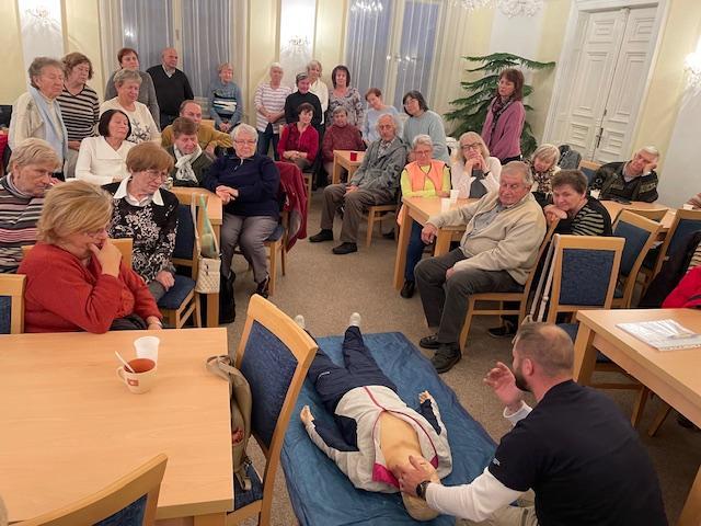Přednáška, kterou vedl zdravotnický záchranář Bc. et Bc. Luboš Bouček, se zaměřila na poskytnutí praktických dovedností a znalostí. Senioři se dozvěděli, jak efektivně reagovat v případě drobných úrazů, srdečního selhání nebo jiných nečekaných zdravotních komplikací. Přítomní se aktivně zapojovali do diskuze a praktických ukázek. Tato interaktivita přispěla k efektivnějšímu osvojení dovedností, které mohou významně ovlivnit jejich schopnost poskytnout první pomoc v reálném životě.