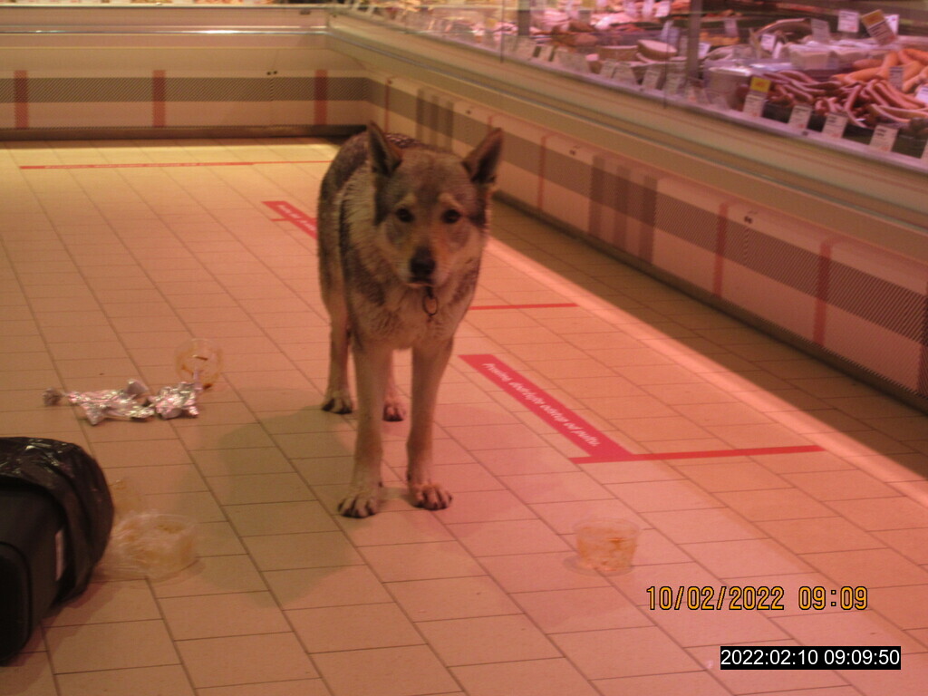 V dopoledních hodinách dne 10.02.2022 bylo na služebně MP přijato telefonické oznámení od prodavačky z provozovny Novák maso – uzeniny v Husově třídě, že do provozovny vběhl pes. Na místo byla okamžitě vyslána hlídka MP Domažlice. Po příjezdu strážníci zjistili, že uvnitř prodejny uzenin se nachází větší plemeno psa. Už na první pohled budil respekt. Při pokusech o odchycení byl agresivní, hrozilo tak pokousání hlídky. Pomocí prostředku ke zklidnění domácích zvířat, který pes dostal s uzeninou, byl zklidněn a mírně otupen. Poté opustil prodejnu a zavedl strážníky k jeho domovu. Za nezabezpečení psa byla majitelce udělena pokuta.