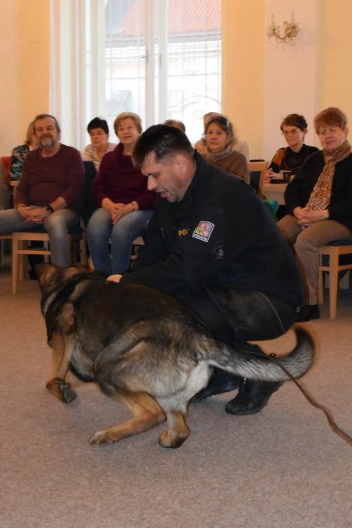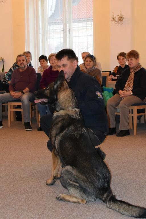 Mezi nejoblíbenější přednášky Domažlické senior akademie patří ukázka práce psovodů Policie ČR. Toto se potvrdilo i 16.ledna 2020, kdy do zasedací místnosti Městského úřadu v Domažlicích přišlo na přednášku 58 seniorů. Přítomní psovodi je seznámili s postupem výcviků psů, s rozdělením služebních psů podle specializací i s dalšími zajímavosti o jejich práci, nechyběly ani dotazy přítomných. Během přednášky psovodi seniorům předvedli poslušnost svých čtyřnohých svěřenců, kdy za svou poslušnost byl každý pejsek náležitě odměněn, shlédli i ukázku zadržení pachatele. Srdce účastníků přednášky si okamžitě získala dvě roztomilá štěňátka, kdy o jejich pohlazení a vyfotografování byl velký zájem.