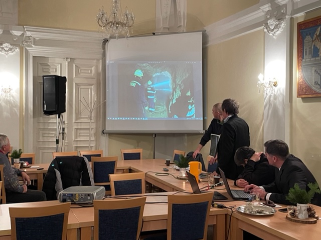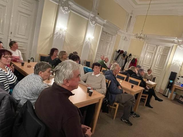 Vánočního setkání se seniory se zúčastnil starosta města ing. Radek Wiesner a členové Spolku Domažlického dějepisu Radek Čáni, Alexej Petrašovský a Jaroslav Dvořák. Přednášející přítomným seniorům připomněli, že Domažlice byly hornickým městem, přiblížili jim postup prací souvisejících s otevřením štoly Na kole, která ukrývá třista metrů chodeb s několika sály plných třpytivé slídy. Tato štola byla pro veřejnost slavnostně otevřena 29.10.2022. Poutavé vyprávění zavítalo i do domažlického podzemí, které se členové spolku snaží turistům zpřístupnit. V závěru vánočního setkání všichni přítomní obdrželi od MP malý dárek v podobě Kalendáře pro seniory plného rad a návodů, jak se zachovat v rizikových situacích.