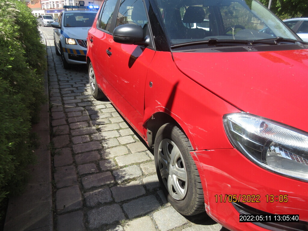 Po nahlášení události byla rovněž vyslána motohlídka do Husovy ulice k zaparkovanému černému vozidlu zn. BMW. Strážníci na místě zjistili, že má odřený lak na nárazníku a hnuté tažné zařízení. Dále hlídka MP odjela k obchodnímu domu Kaufland, kde řidička červeného vozidla zn.Škoda skládala do kufru svůj nákup. Toto vozidlo mělo odřený přední pravý blatník, řidička strážníkům sdělila, že o odření vozidla nic neví. K vyřešení dopravní nehody byla přivolána hlídka DI PČR Domažlice, která si věc převzala.