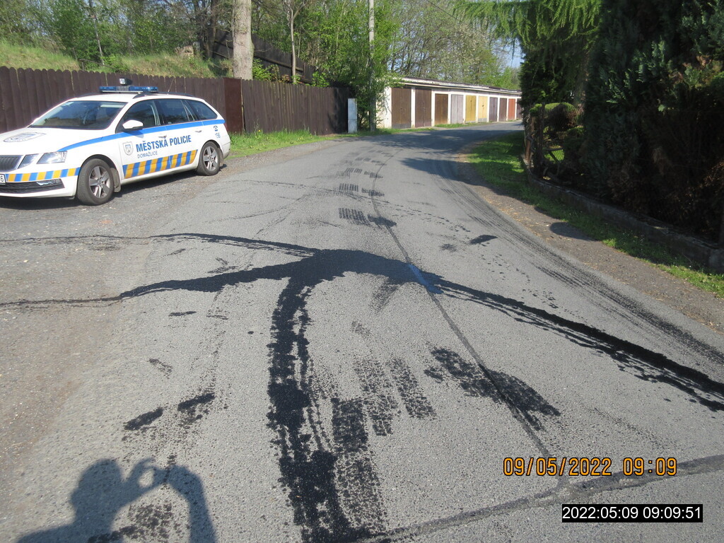 Na místo byla vyslána motohlídka, která zjistila, že je znečištěna nejen ulice Prokopa Velikého, ale olejová stopa vede i do ulice Švabinského. Hlídka MP nahlásila informace o znečištěné komunikaci na operační středisko HZS PK se žádostí o odstranění závady. Operátor MDKS prověřoval kamerové záznamy a zjistil projíždějící vozidlo, kdy ze záznamu bylo patrné, že z tohoto vozidla unikají provozní kapaliny. Dalším šetřením hlídka MP zjistila, že uvedené motorové vozidlo se nachází před jedním z autoservisů. Strážníci kontaktovali provozovatele vozidla, který se dostavil na služebnu MP k podání vysvětlení, muži byla uložena pokuta ve výši 5.000,-Kč.